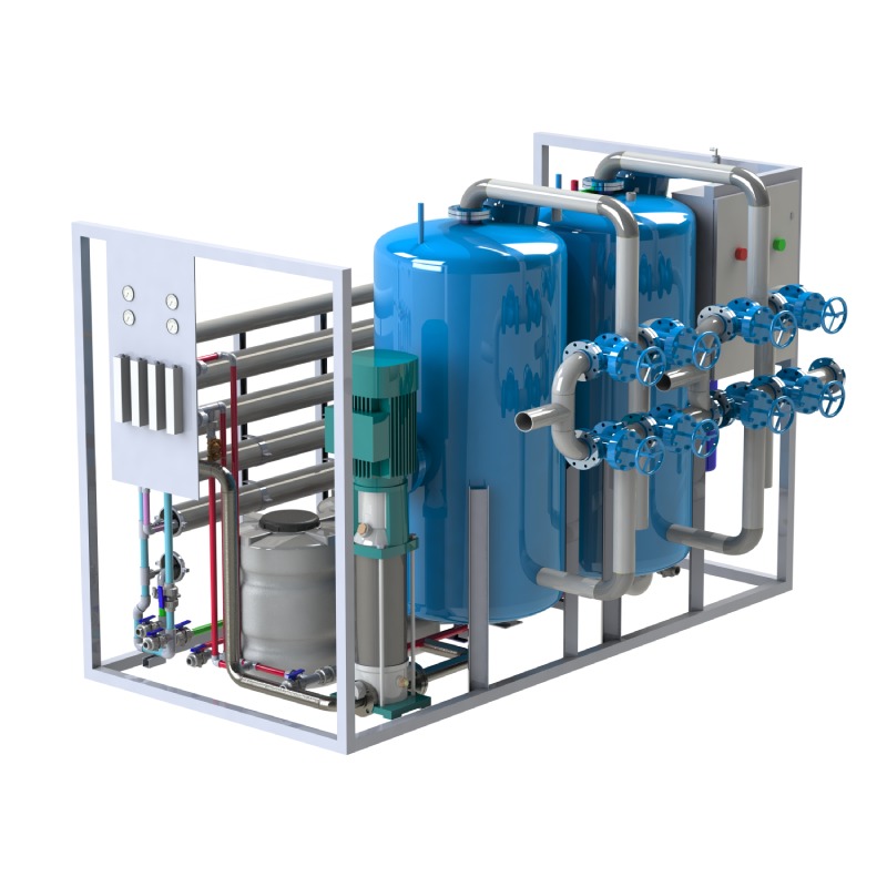 دستگاه تصفیه آب صنعتی 800 متر مکعب با سرعت و راندمان بالا قادر به حذف املاح و فلزات سنگین آب است و در بسیاری از صنایع کاربرد دارد. این دستگاه تصفیه آب صنعتی از 32 ممبران 8 اینچ فیلمتک آمریکا تشکیل شده و پمپ های اصلی به کار رفته در آن از نوع سانترفیوژ طبقاتی هستند.