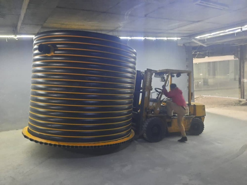 به جای مخازن معمولی، از مخازن اسپیرال کاروگیت با بدنه تقویت شده و طراحی ویژه برای نصب غیردفنی استفاده شد. این مخازن علاوه بر تحمل فشار داخلی، دسترسی مناسب برای نصب شیرآلات، آشغالگیر و تجهیزات کنترلی را فراهم کردند و ریسک نشتی و مشکلات بهره برداری را به حداقل رساندند.